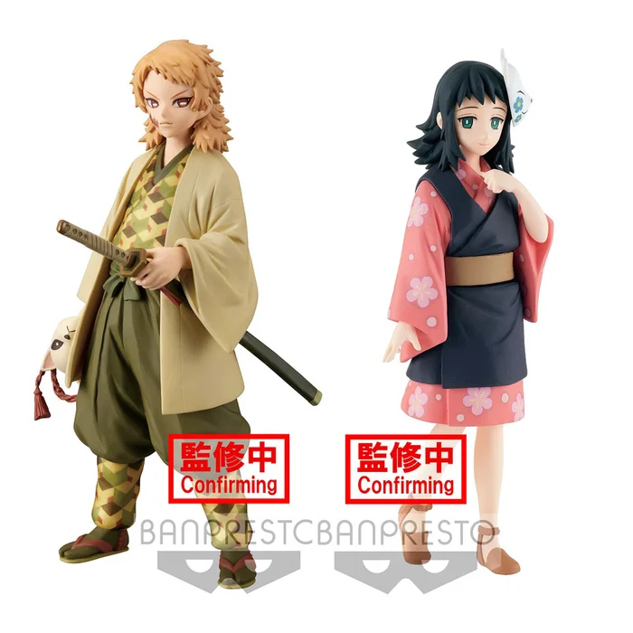 Banpresto continues to recreate the world of Demon Slayer: Kimetsu no Yaiba in affordable prize figure form, and joining the lineup this time are the two former apprentices of Sakonji Urokodaki who help train Tanjiro during the Final Selection arc – Sabito and Makomo! Both have been captured in great detail in poses that show their personality, with Sabito standing confidently with one hand on his sword and the other holding his fox mask as he gives an aggressive glare, and Makomo standing demurely as she gives a soft, kind smile.