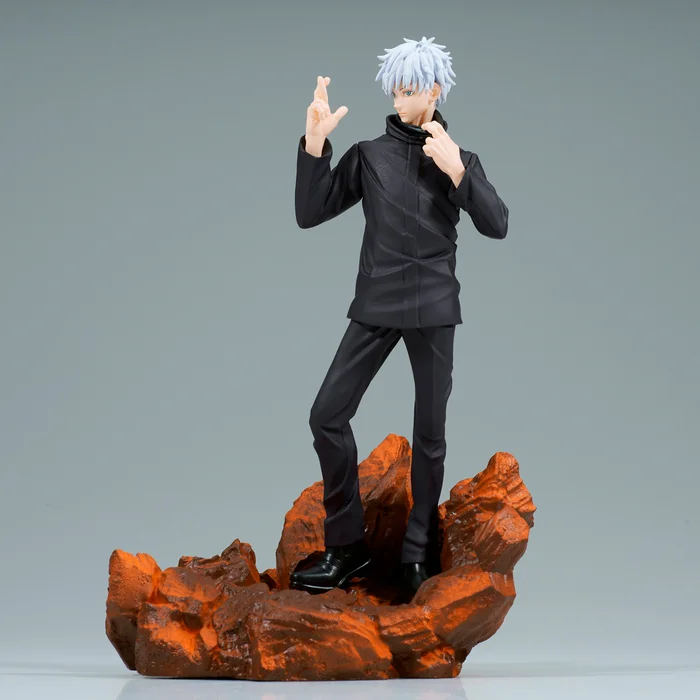 The kick-ass battles from Jujutsu Kaisen are being captured in figure form for Banpresto’s Combination Battle line of affordable prize figures, and this time it’s Gojo-sensei’s battle against the special grade cursed spirit allied with Mahito, Jogo, from episode 7! Measuring 5.9” tall, Gojo-sensei is captured standing confidently and showing off his baby blues as he lowers his blindfold to activate his Infinite Void Domain Expansion. He stands on a rocky base that can join together with the separately sold figure of