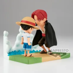 From One Piece and Banpresto’s World Collectable Figure series comes an affordable diorama-style figure of an iconic moment between Luffy and Shanks from One Piece! The 2.8” tall figure recreates the nostalgic scene when Shanks gives kid Luffy his straw hat. Enjoy this charming chibi homage to the memorable moment as part of your collection!