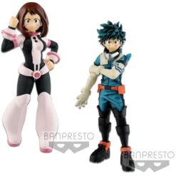 From Banpresto’s Texture figure line that aims to recreate the look and feel of popular characters’ outfits comes heroes-in-training Ochaco “Uravity” Uraraka and Izuku “Deku” Midoriya from the popular anime My Hero Academia. Both are wearing their hero outfits which have been recreated in impressive detail with particular attention paid to their unique textures. Each stands in a confident, heroic pose that shows their personality and determination. Get your favorite or add them both to your collection!