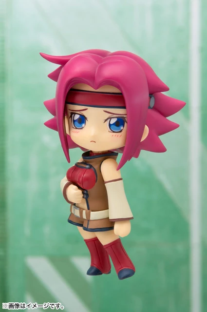 Code Geass takes place in an alternate future where the world is divided into three superpowers: the Chinese Federation, Brittania and the European Union. Japan is now ruled by the Holy Brittanian Empire and is referred to as “Area 11” with its citizens simply known as 11s. Kallen is half 11 and half Brittanian and leans closer to her mother’s traditional Japanese nationality than her father’s Brittanian, and like her brother is a member of the resistance. This fantastic Chibi-Arts figure from Tamashii Nations perfectly recreates her appearance from the series in a cute, super-deformed style and includes three different expressions and interchangeable arms, as well as a special cockpit stand and speech bubble accessory bearing her catchphrase. Another excellent figure from the Chibi-Arts series, this super-cute flame-haired heroine is one you won’t be able to resist recruiting for your very own collection!