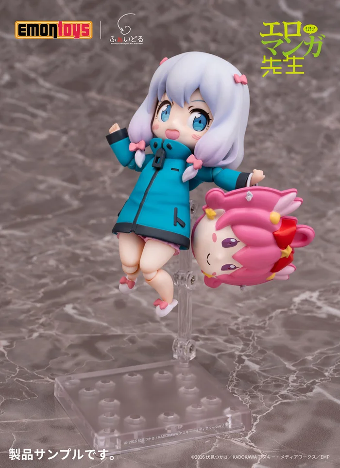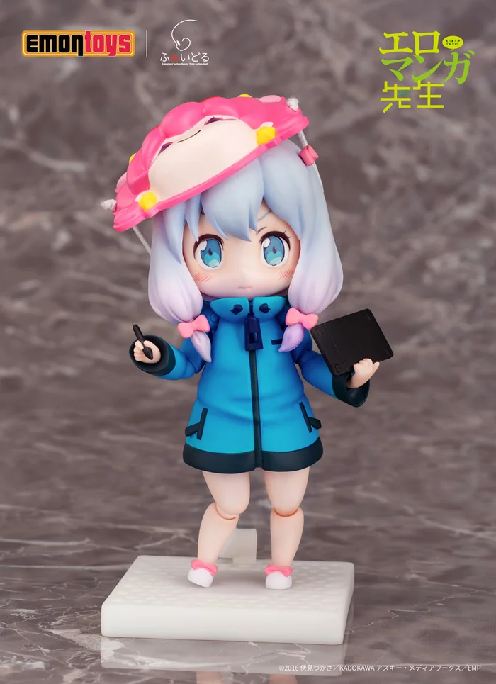 From EMONTOYS’ new line of articulated, adorably chibi figures, faidoll, comes the cute hikikomori who likes to draw ecchi artwork, Sagiri Izumi, from the popular series Eromanga Sensei! The first figure released in the series, Sagiri measures 5.1″ in stylized chibi form and is articulated, allowing you to pose her how you’d like. She comes with interchangeable face plates with moveable eyes and optional parts including her tablet, pen, and a Meruru mask that she can wear to hide her identity just like in the series! Add her to your collection!