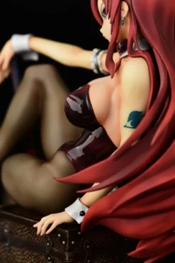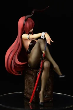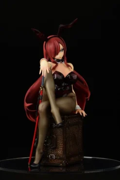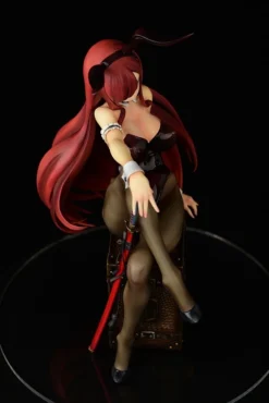 Brought to you by sculptor Daisuke Manno and OrcaToys comes Fairy Tail’s Erza Scarlet in a bunny girl outfit! Sitting seductively atop one of her many suitcases, Erza is geared up in the classic black bunny girl one piece and waist-high stockings. Her legs are crossed in a way the gives a spectacular view of her musculature, and her voluminous red hair wraps around her backside like a dark fiery flower pedal. Resting under her right arm is one of Erza’s hundreds of swords, because even in this sexy gear, she’s always ready for battle!
