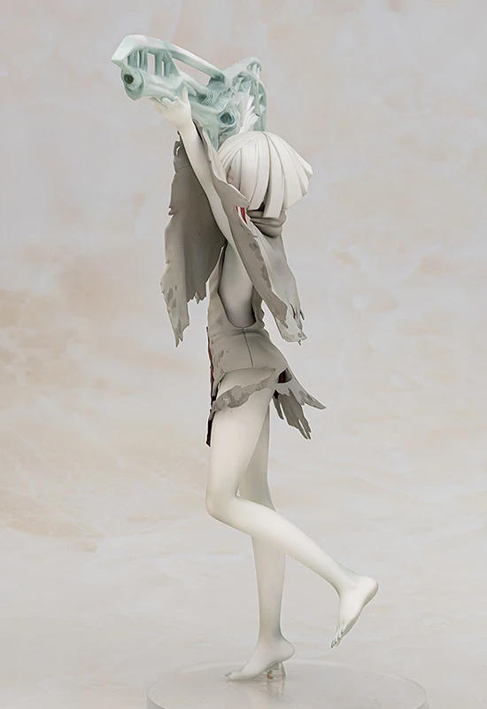 Instead of the dress she wears later on, she is wearing the Fenrir flag outfit she first appears in. It’s tattered details, deep crimson paintwork, and gray shading has been meticulously completed for a realistic appearance. Her curious, bright golden eyes and big innocent smile complete her beautiful look. You can almost hear her singing. Add Shio to your collection!