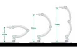 Thanks to the Nendoroid More line, you can now purchase a set of four complete Simple Stands! These stands are perfect for your Nendoroids and other small figures! Made of transparent material and equipped with 3mm pins, the Simple Stands blend into the background to let your figures shine! And each Simple Stand comes with an articulated curved support arm and straight support arm, so that you can get just the right angle for your Nendoroid display!