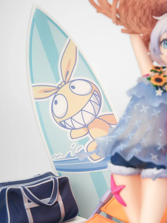 If a burst of sunshine could be captured in figure form, it would probably look like this 1/8 scale figure of Theresa Apocalypse from Honkai Impact 3rd! Theresa-chan has been adorably depicted in her outfit from the Summer Shallow event. The look of her frilly blue top has been replicated with translucent material, and her large brim hat is highly detailed with a realistic, intricate weave pattern! But that’s only the beginning of the cuteness. Theresa-chan is surrounded by a full set of beach goodies, from inflatable toys and a rubber ducky to a folding chair and surfboard. She’s vowed to show you a good time, as expected of Teriri World’s #1 cutest!
