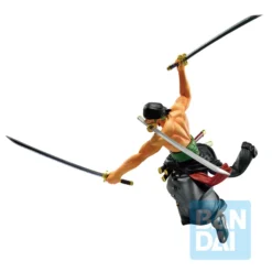 Introducing a One Piece Ichibansho figure of Roronoa Zoro, the first crewmate that Luffy ever recruited! In this figure, Zoro is sporting his shirtless look. His muscles are well-sculpted, right down to his veins! Zoro shows off his mastery of the three-sword style with all of his katana out, even one carried between his teeth!