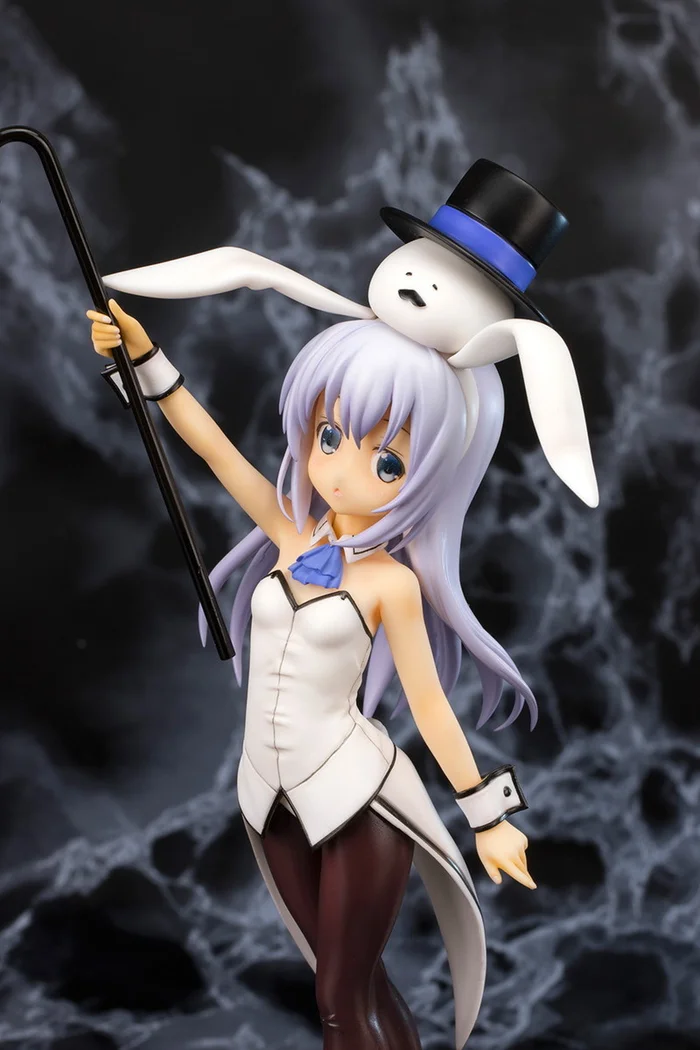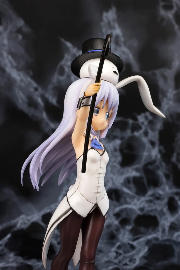 Chino from Is the Order a Rabbit?? is about to perform the cutest magic show together with a moustached angora rabbit atop her head… Oh! That’s Tippy of course! (The moustache almost fooled us ^^! ) This 1/8 scale figure sculpted by B-Full stands 8.3”. The careful sculpting of wrinkles on her top and the sheen of her tights give her outfit a realistic appearance while her familiar coy expression is so entrancing we’re sure to miss whatever slight-of-hand trick she’s about to perform! The only trick we hope she never does is disappears!