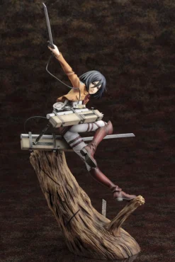 This exciting figure of Mikasa Ackerman is back as a Renewal Package! Made by ArtFX J and sculpted by Taketo Ogasawara, Mikasa is captured in the air above the trees thanks to the support of a realistic-looking wooden log base. Utilizing her 3D Maneuver Gear, Mikasa’s expression remains stoic even as she cuts down the monstrous Titans! She’s definitely been depicted in her element. The only sight better than Mikasa is having the complete set with Eren and Levi (both sold separately). The three of them will keep your display case safe from Titans!