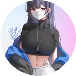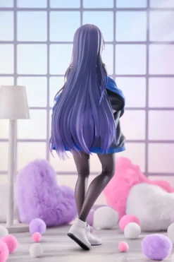 The character is called Mask Girl Yuna. At 1/7 scale and 9.3″ tall, she’s dressed in a white mask, short shorts, and a tight-fitting crop top. A black and blue jacket slides off of her arms, providing an unobstructed view of her silky hair and come-hither stare!