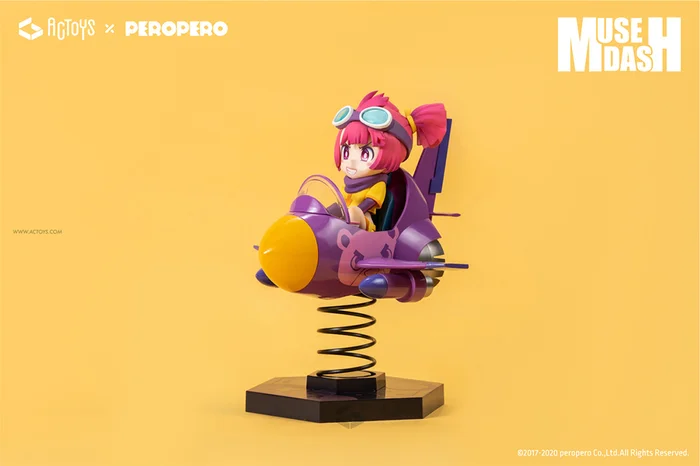 Feel the rhythm, feel the rhyme! Pilot Buro’s here and it’s Muse Dash time! Sculptor Nagano Kenmin has brought to life Buro in a cute purple jet. The vibrant colors of the game have been faithfully recreated, making this a bright collector’s item for your display. The jet is creatively connected to a spring stand so it looks like it’s taken flight!