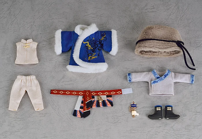 Give your Nendoroid Doll a new toasty warm, traditional look fit for an intrepid grave robber with this outfit set themed after Zhang Qiling from the popular Chinese fantasy action-adventure series Time Raiders! Made of real fabric, the set recreates his Motuo outfit from the series and comes with a hat, innerwear, top, pants, outerwear, a belt, boots with magnetic soles, a prayer wheel, and interchangeable hand parts.