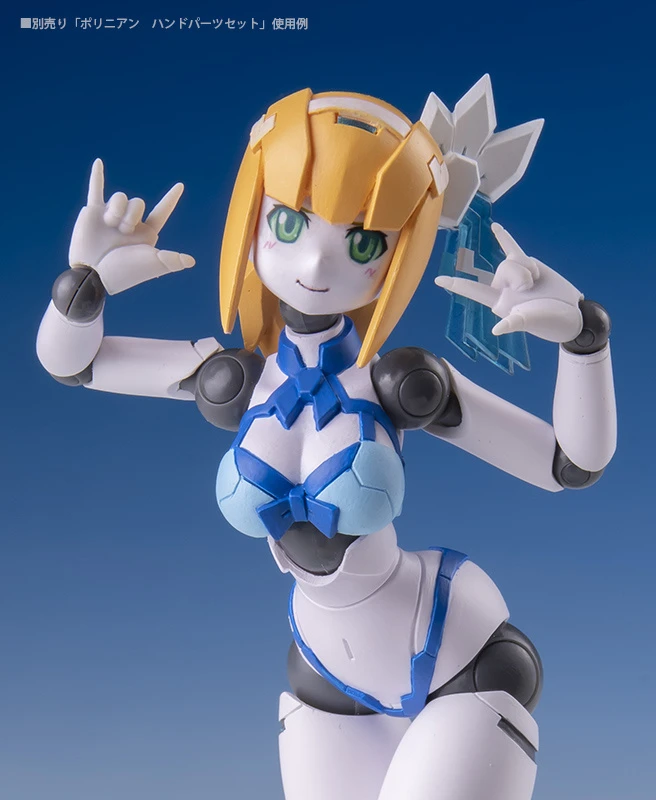 FMM Clover is back and ready for a beach day! The thicc-thighed Robot Neoanthropinae Polynian has been updated by Daibadi with newly sculpted and improved hair parts and also features a detachable skirt and accessory parts made with clear materials. She comes with three different face parts, an energy spray-gun, interchangeable hands, and a new face part that can be combined with the separately sold figure of Vania.