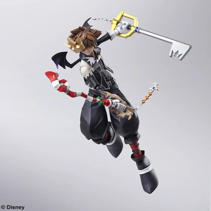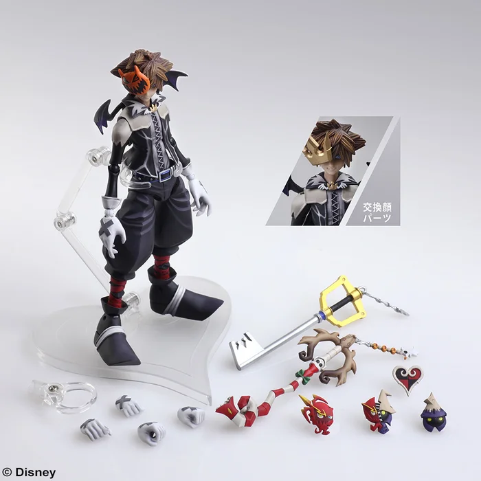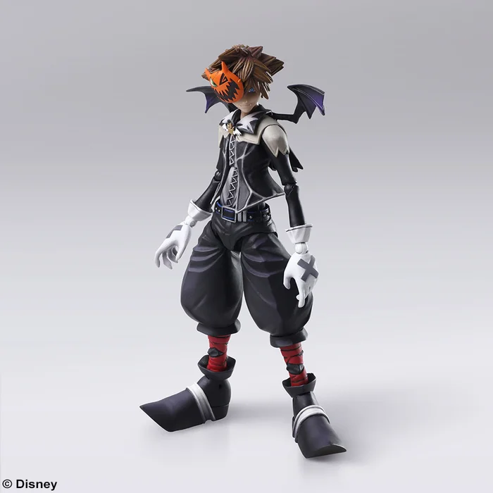 Sora comes to the Brings Arts lineup of articulated and highly detailed figures in his Halloween Town outfit from Kingdom Hearts II! Ready to put the beatdown on Maleficent and Oogie Boogie, Sora comes with two face parts and six types of masks to wear, along with 2 Keyblades, optional hands, and a display stand for capturing him in dynamic poses.