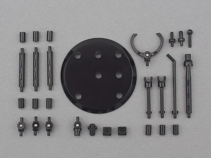 This is the black version. It comes with 3 mm and 4 mm axises* and ball joints for a customizable setup that’ll fit nicely with any figure. Be sure to check out the clear version, too!